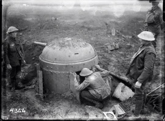 This was an anti-tank cupola that the Germans installed in their lines in 1917. The tanks were meant to overcome the trenches and of course, inspired a response. This one took our 7 tanks prior to capture.
