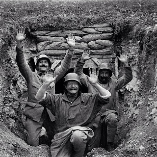 Some French troops having fun with captured German helmets. This is from 1917, which was the year of the French mutinies that nearly ended the war. The French are much maligned as 'surrender monkeys'. This is a strange reputation considering they were the most feared military force for a century. Most of 19th Century European continental policy was on containing the fierce French. It is possible immediacy bias as they did roll over quickly in WW2, and then lost in Vietnam... which has been a losing fight for many a foreign invader.